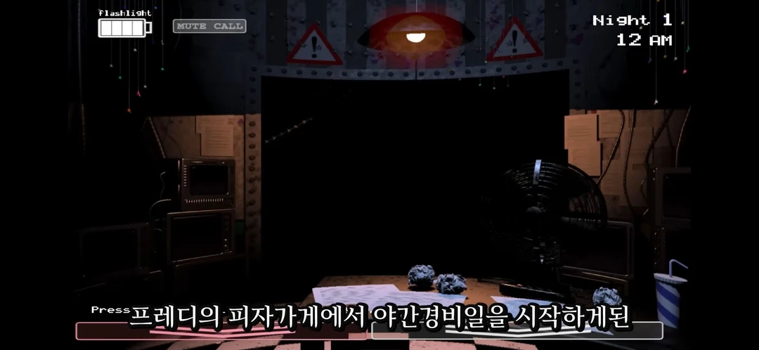 전화를걸며 여보세요? 여보세요... 어... 당신 도대체 여기서 뭐하는 거에요? 공지 못 들었어요? 어, 여기 폐쇄됐어요. 그러니까, 최소한 한참 동안은 닫혀 있을 거예요. 어떤 사람이 슈트 중 하나를 썼거든요. 창고에 여분의 노란색 슈트가 하나 있었는데... 누가 그걸 입었나 봐요... 이젠 아무것도 제대로 돌아가는 게 없어요. 잘 들어요, 그- 그냥 아침까지 버텨보세요. 그게 밤중에 나가려고 하는 것보단 더 안전할 테니. 어, 내일 또 다른 행사가 있어요. 어떤 아이의 생일이요. 당신은 낮에 일할 테니까 유니폼 입고 애니매트로닉스 옆에 꼭 붙어서 걔들이 아무도 해치지 않도록 주의해 주세요. 어, 일단 지금은 그냥 아침까지 기다리세요. 어, 가게가 재개장하면 제가 밤에 일하게 될 겁니다. 그래요, 좋은 밤 보내고 행운을 빌게요.