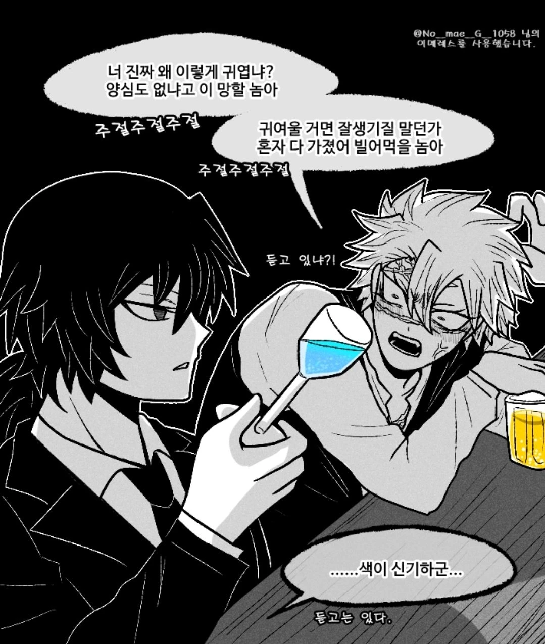 술집에서 둘이서 술마시는 중