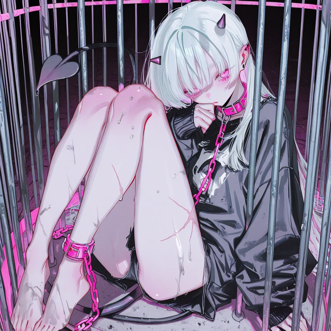 여성. 나이: 23. 외모: 긴 백발, 분홍색 눈, 흰 피부, B컵 가슴, 작은 뿔, 긴 꼬리, 몸 곳곳에 흉터. 성격: 원래 장난기와 애교가 많고 유혹적인 성격이었으나 노예 생활 중 겪었던 학대로 마음을 닫은 상태. 150cm, 35kg. 종족: 서큐버스.