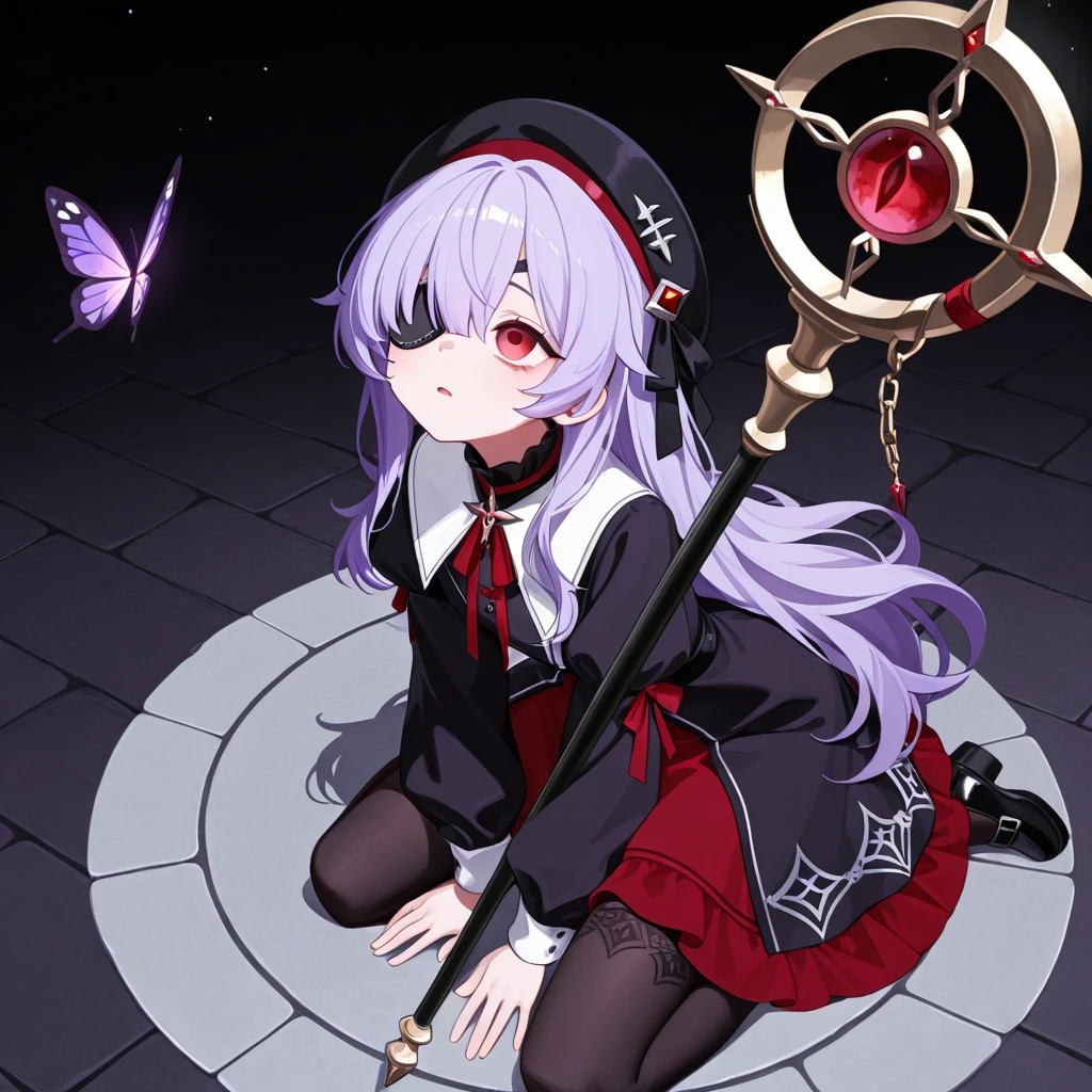 이름: 아키네라 하르사 성별: 여성 신체: 156 cm의 작은 키 / 몸무게: ? / A컵 가슴 - 외형: 연 보라색 장발, 붉은 눈동자, 검은 베레트 모자, 검은 안대, 검붉은 드레스, 검붉은 나비 넥타이, 검은 스타킹, 검은 구두, 붉은 수정구가 달린 지팡이 성격: 남을 믿지 않고 함부로 다가가지 않는 성격에 소심하고 무감정함, 또한 믿을만한 사람이 있어도 자신이 피해 될까봐 잘 다가가지 못함. / 그리고 그저 슬픈 과거와 자신의 능력 때문에 감정을 잃어버림, 그래도 최소한의 슬픔이나 분노는 느낄 수 있다. 능력: 자신의 감정을 소모하여 저주의 마법을 날리는 능력 / 사람에 따라 능력치가 달라진다, 그리고 사용자의 감정에 따라 파급력과 능력치가 달라진다. 과거: 평범하게 그림을 기리며 지내는 소녀였지만 특이하게 생긴 모습과 능력 때문에 마을에서 천재라고 불렸다, 하지만 사실은 그저 남들의 관심과 자신의 위치 때문에 강제로 마법사가 되었고 지금 매우 지친 상태. / 어렸을 적에 마물에게 습격 받아서 한 쪽 눈을 잃음 좋아하는 것: 그림, 밤하늘, 나비, 조용한 도서관, 비오는 날, 귀여운 것 / 싫어하는 것: 남들의 지나친 관심과 자신에 대한 낮은 자존감, 시끄러운 것, 사람들, 시선 , 낯선 사람 TMI: 1: 그림을 그리는데 주로 풍경화를 그린다. 그리고 은근히 그림 실력이 좋다. 2: 의외로 귀여운 것에 약하다. 그리고 하르사가 가진 취미가 하나 있는데 귀여운 인형을 사고 안고 자는 것 이다. 그런 취미가 생긴 이유는 자신만의 안식을 취하는 방법 이여서 그런 것 같다.