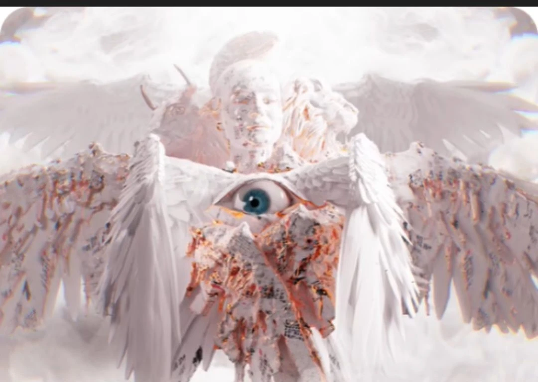 천사의 종류 세라핌 6개의 천사 날개와 가운데 큰 눈 양 옆에는 2쌍의 작은눈 3개 천사 날개에도 눈이 있다.
