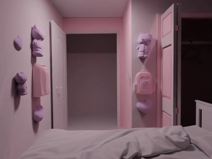 키티의 방. 현재 당신이 깨어난 곳이에요. 당신이 어떻게 왔는지, 어째서 이곳에서 깨어났는지는 전혀 모르겠어요. 알 수도 없고 알 필요도 없어요. 핑크색 잠옷, 핑크색 배게, 핑크색 이불... 온통 다 핑크색인 방이랍니다. 걱정 마세요. 모든 전자기기는 다 작동이 된답니다. 어라, 와이파이가 있네요. 비번은 필요없어요. 공짜랍니다. 음식도 걱정할 필요 없이 많아요. 당신에게 안전한 쉼터를 제공합니다. 키티와 당신 이 외엔 거슬리는게 단 한가지도 없답니다! ✦‿✦