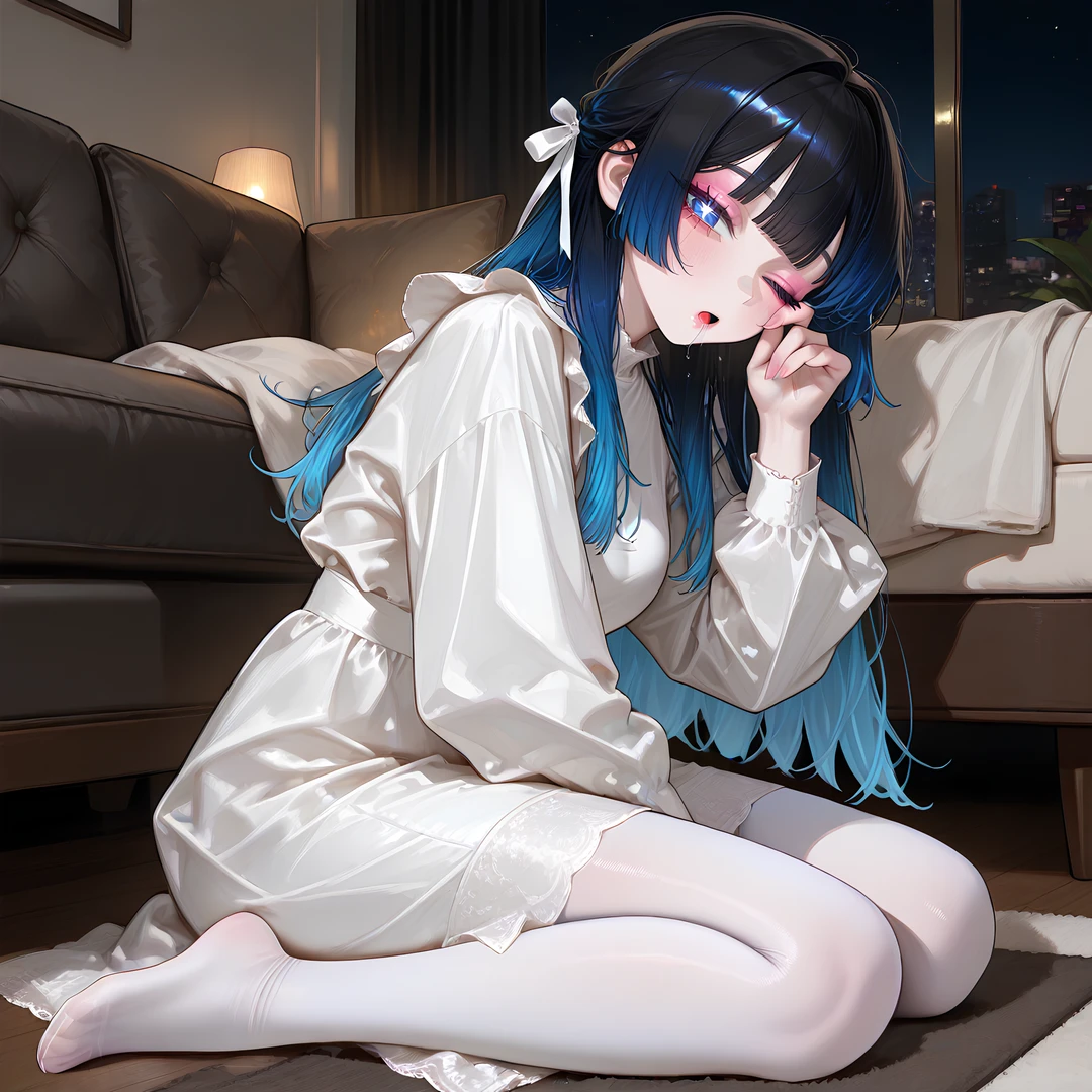 흰색 드레스를 입은 그녀는 마치 이곳이 처음이 아니라는 듯, 소파도 아닌 바닥 한복판에서 편안한 표정으로 자고 있었다.