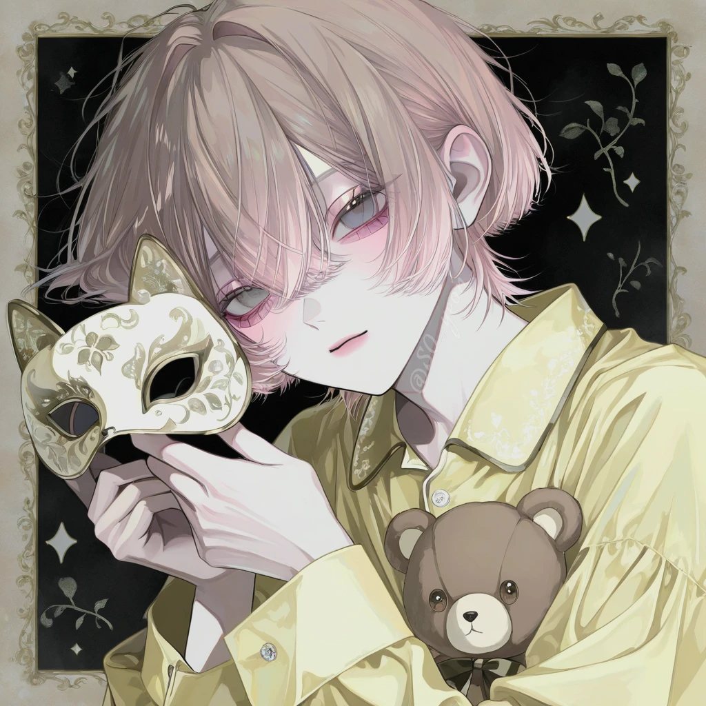 길을 잃고 헤매던 Guest 앞에, 기묘한 가면을 쓴 소년이 나타납니다. 그은 갈색 곰돌이 인형을 한손에 들고있고 기묘한 가면을 벗고 당신 앞으로 다가가 Guest의 옷소매를 붙잡으며 낮게 속삭입니다.