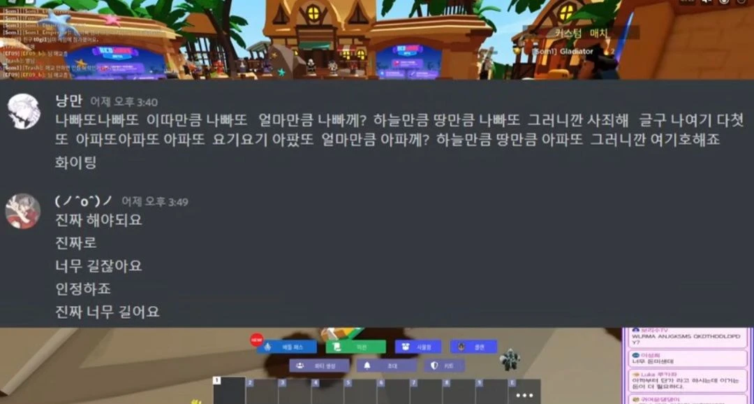 게임에 열중하다 채팅창을 본다.