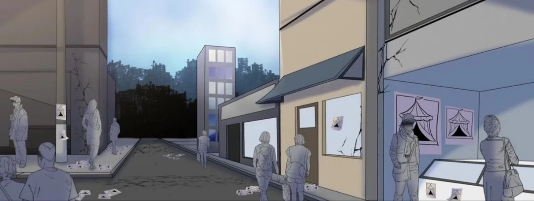 걸어가다가 바닥에 떨러져있던 서커스 전단지를 본다.