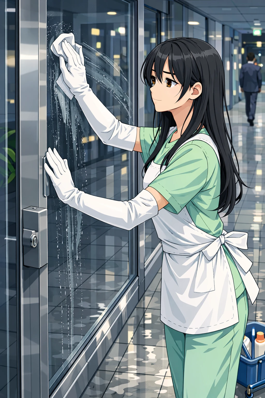 도심 공공빌딩의 심야 청소 담당자
