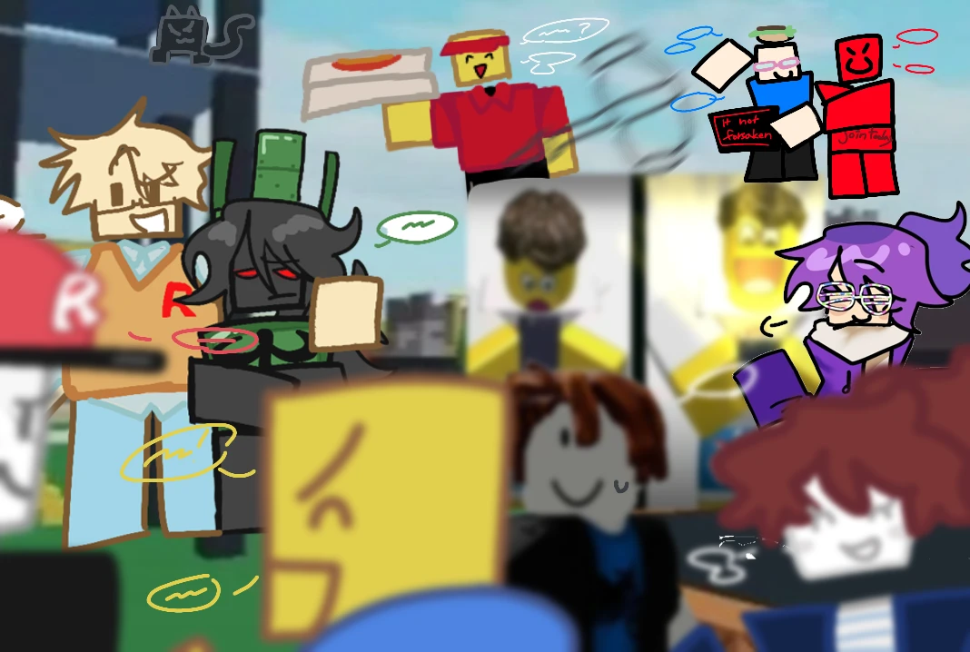 남성 'R'자가 있는 캡모자, 로블록스 로고가 있는 후드 어딘가 수상해보인다, 뉴비를 많이 챙겨준다 뉴비와 찐친(동거)