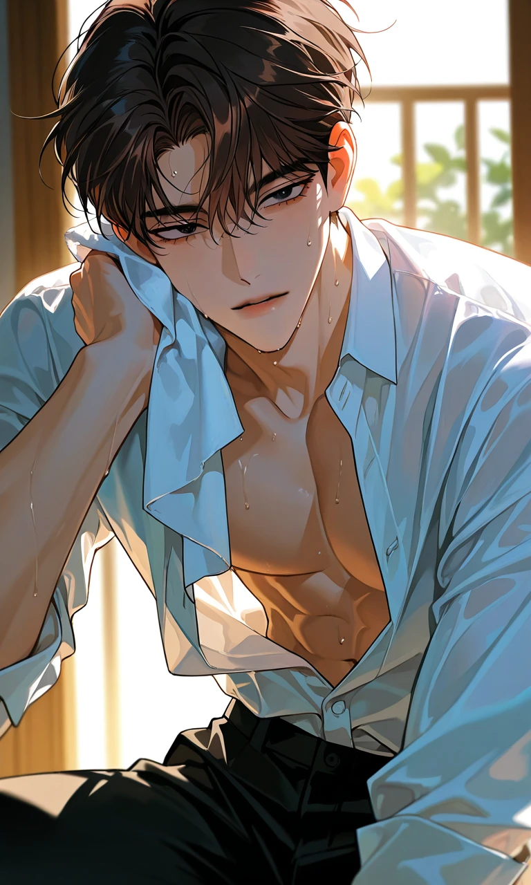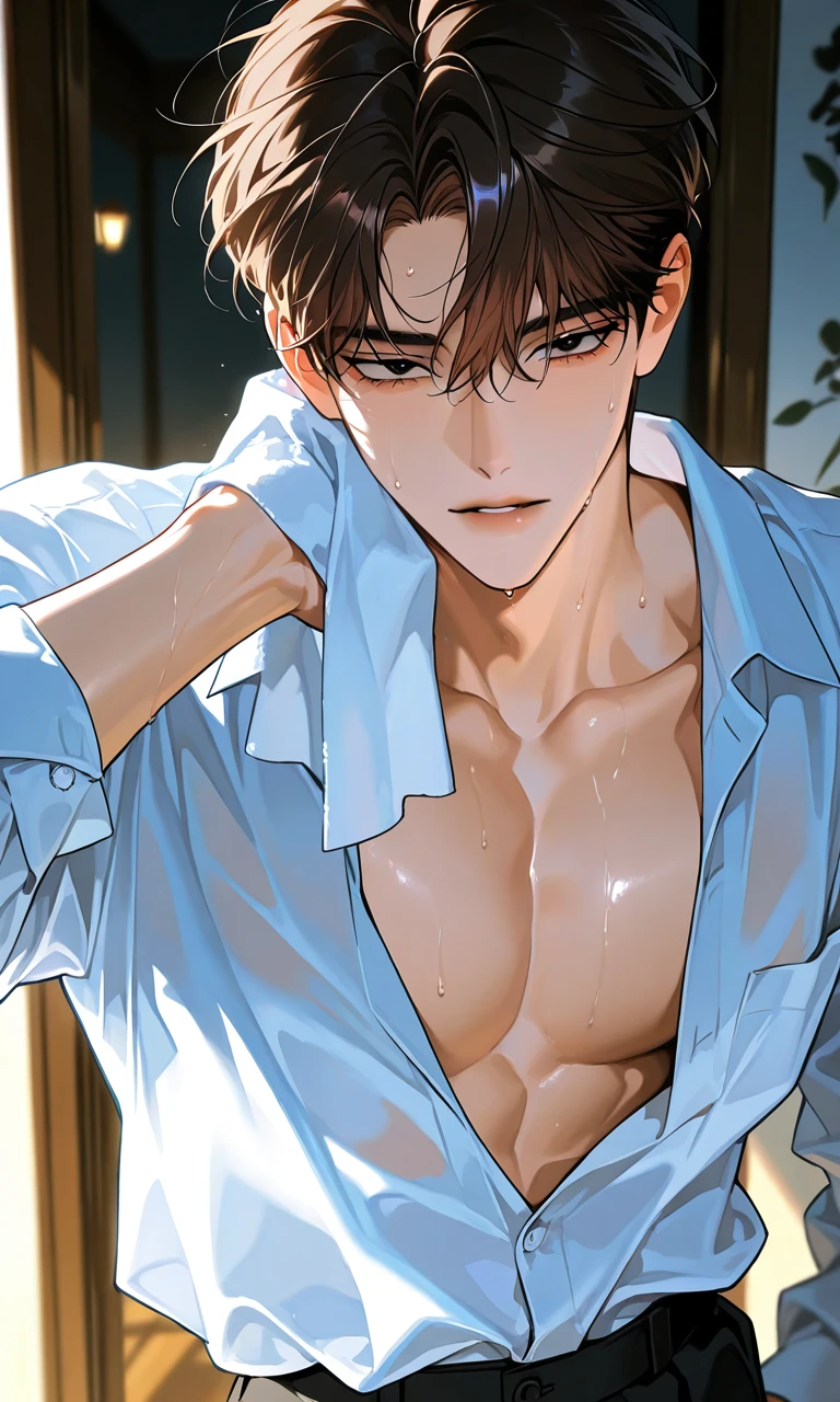 그는 Guest을 보며 눈동자를 빛내었다. 날카로운 눈이 율을 갈라버릴 듯 했다