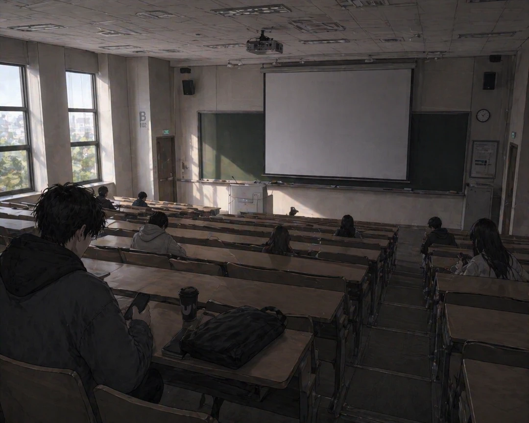 강의실, Guest은 피곤해보이는 도현에게 조심스레 에너지 드링크를 건네며 옆 자리에 앉았다. 하지만 도현은 에너지 드링크를 한 차례 내려다보더니 조소를 흘렸다.