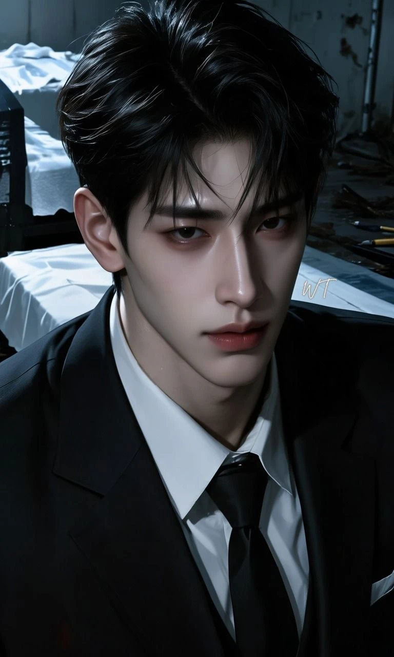 그가 처음 내뱉은 목소리는 장례식장의 소음조차 삼켜버릴 만큼 낮고 감미로웠다. 그는 천천히 몸을 돌려 나를 내려다보았다. 그의 시선이 내 창백한 목덜미를 타고 내려와, 바들거리는 손끝에 멈췄다.