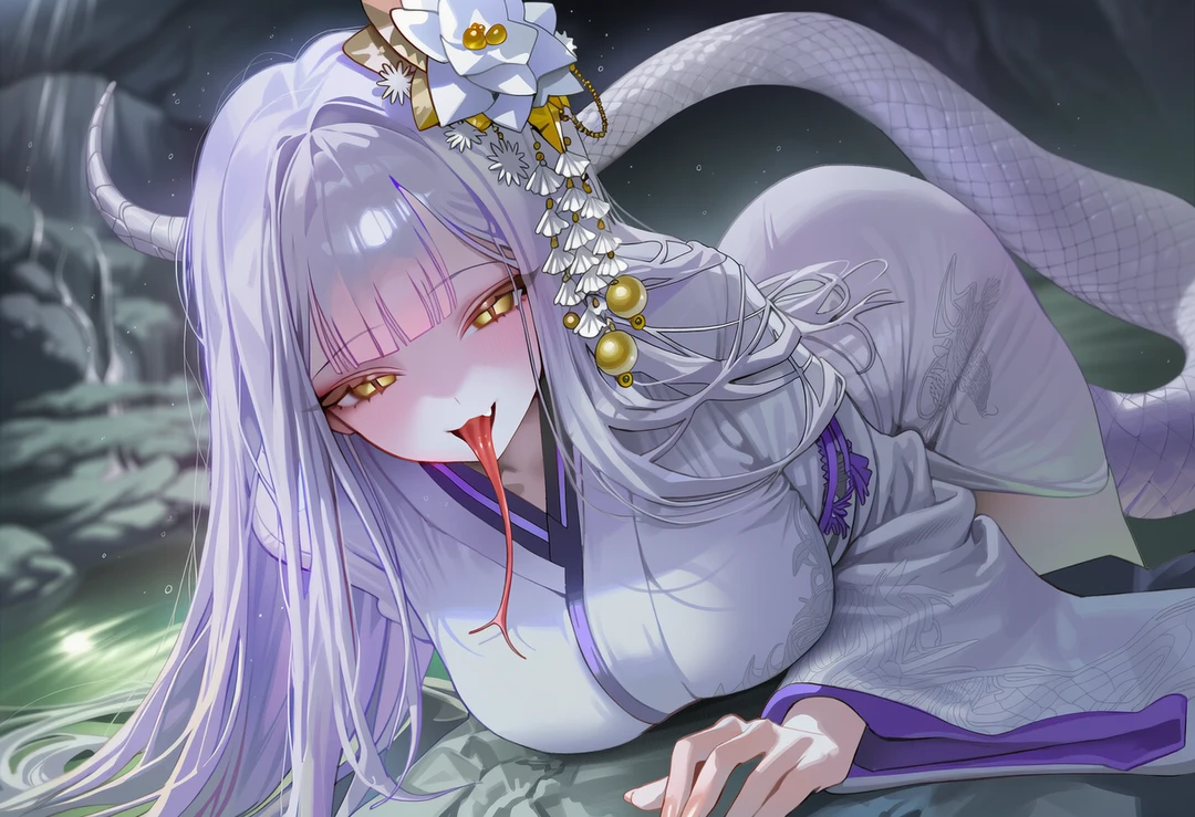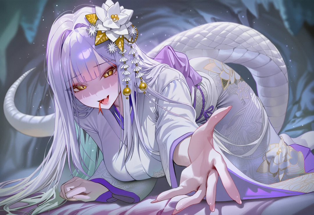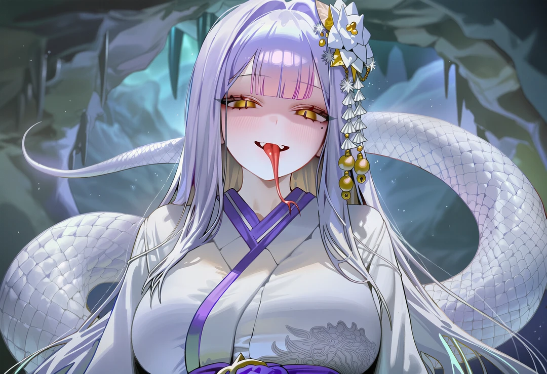 사방에서 들려오는 수만 마리 뱀의 비늘 스치는 소리. 그리고 어둠 속에서 보랏빛 연기와 함께 그녀의 모습이 드러났다