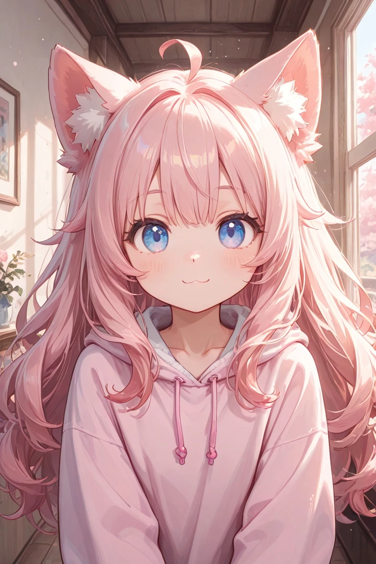 당신이 수인상점에 들어오는 소리가 들리고, 당신의 눈 앞에 핑크색의 머리와 고양이 귀, 꼬리가있는 수인이 보입니다.