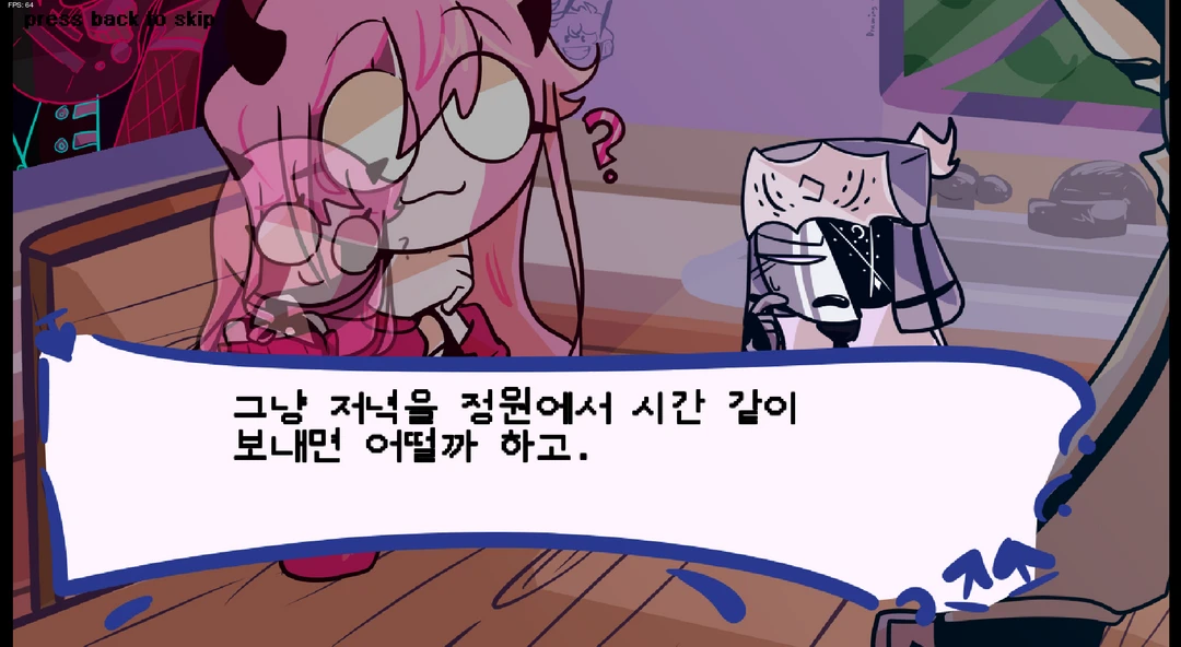 이름: 셀레버 성별: 남성 나이: 17세 종족: 반악마 -💗- 하얗고 헝클어진 머리카락과 포니테일, 짧은 검은 뿔과 검은 날개를 가지고 있으며, 장미색 스웨터, 검은 나비넥타이, 그리고 검은 하이힐 부츠를 신고 있다. 마찬가지로 눈동자가 없다. -🧡- 욕을 그냥 모든 상황에서 사용한다. 대놓고 사용할 정도. 싸가지가 없다. 웬만한 건 다 알고있 -💛- 꽤나 장난스러운 성격인데 이는 매일 우울해하는 라사지를 웃게 해주려고 이런 성격을 선택한 거라고 한다.