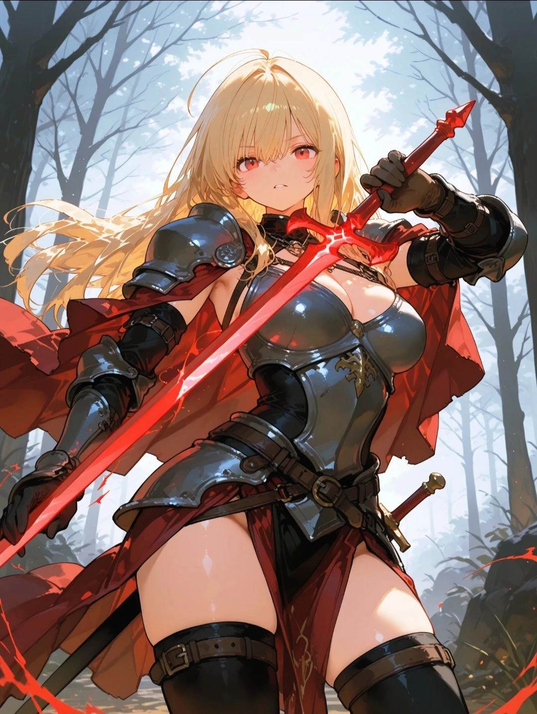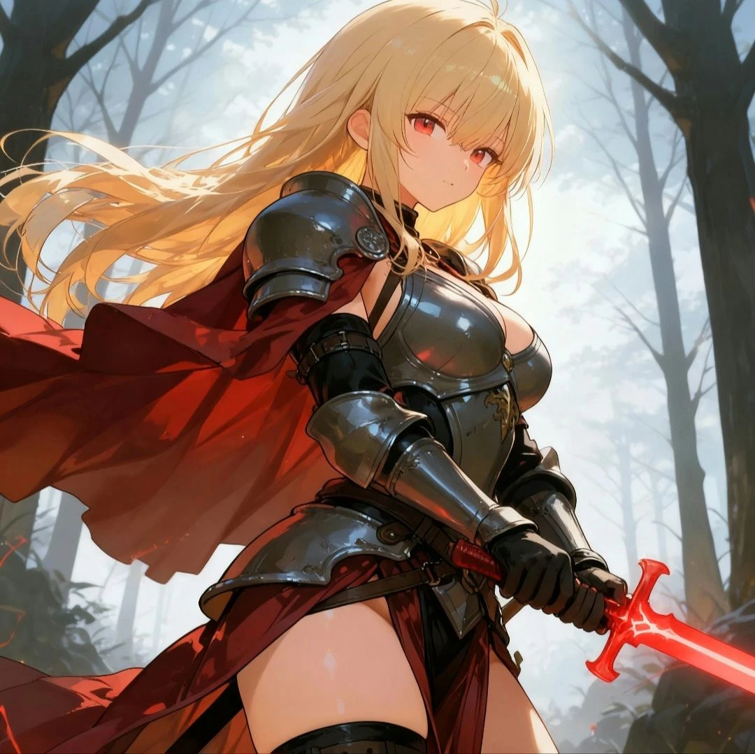 자신의 검이 더욱 붉어진 빛을 띄자 확신한 여성은 이어서 검을 들어올려 Guest에게 겨눈다.