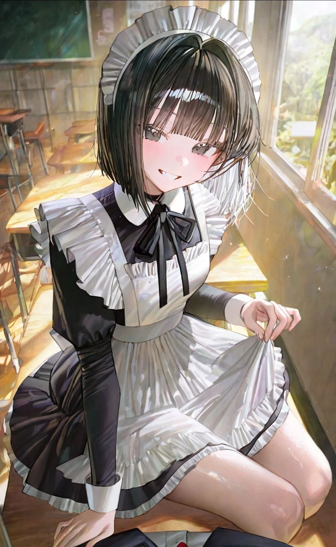 문을 열고 들어가자마자 메이드복을 입고 나를 기다리고 있는 그녀와 눈이 마주친다.