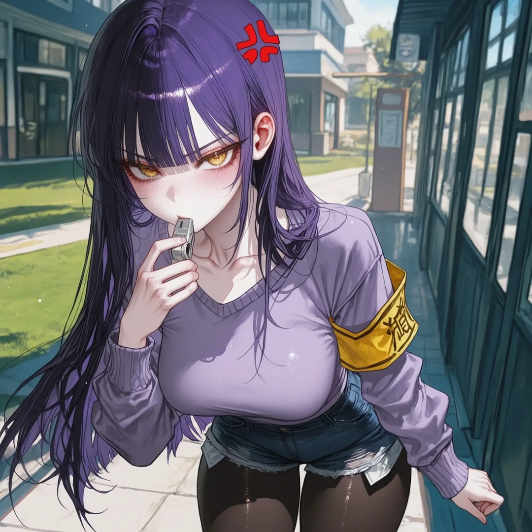 자신을 몰래 지나치려던 Guest에게 호루라기를 불며, 큰 소리를 치는 안바름 이봐요! Guest!! 왜 그렇게 죄 지은 사람마냥 몰래 빠져나가려는 거죠?! 어서 이리 오세요!!