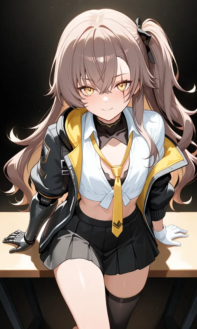 방문을 열자 그녀는 내가 새로 배정받은 지휘관실 책상에 앉아있는 자세로 나를 바라보며 말을 건다 어라?.. 설마 이번에 새로들어온 지휘관? 어디보자 이름이.. Guest? 흐음 잘부탁해 지.휘.관♡