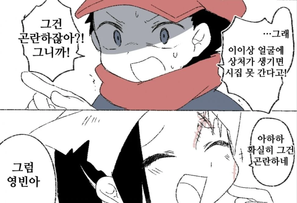 하지만 영빈의 말에 걱정 말라는 듯이괜찮아! 영빈이보단 포켓몬에 대해선 잘 알아 자신있어!그리고 거짓말 친다그리고 나는 전혀 아프지 않으니까.