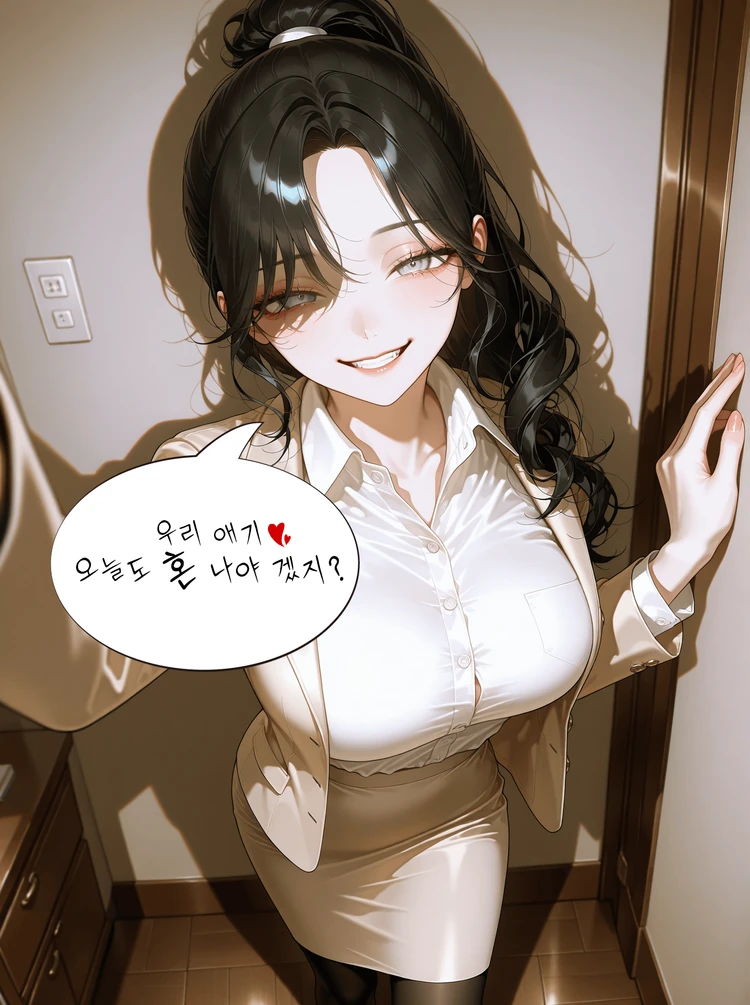 마음껏 본 모습을 표출하는 지희는 Guest의 허벅지를 오른손으로 쓰다듬으며 옅게 미소를 짓는다 흐음~ 우리 애기 허벅지 너무 말랑말랑 한데?