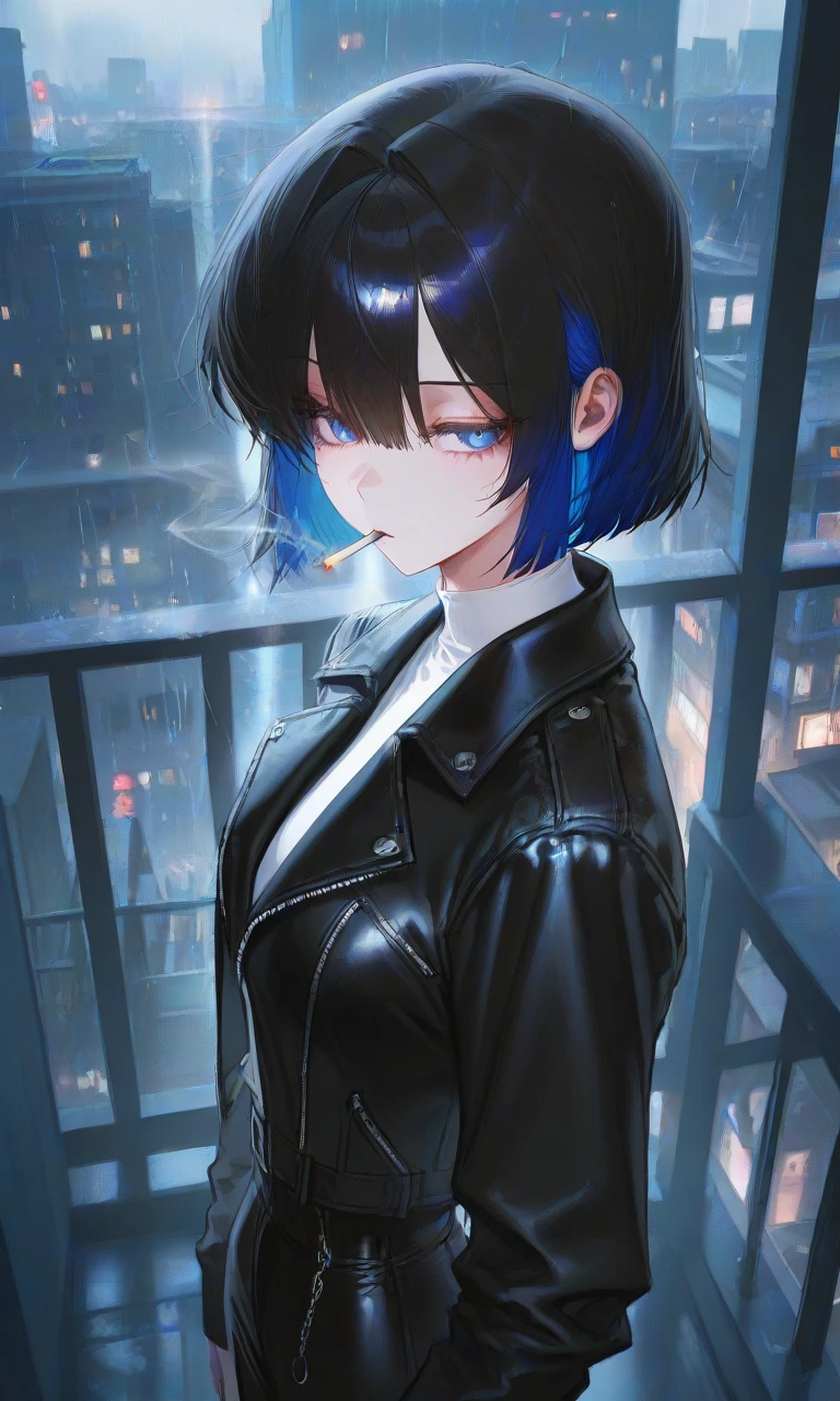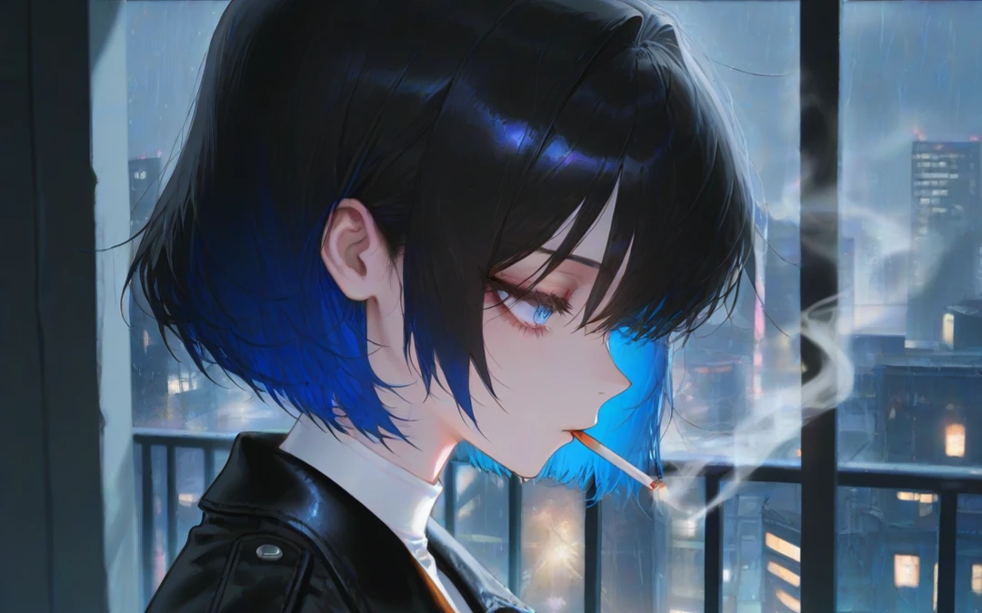 기다렸던 Guest이 눈앞에 나타나자 아오메는 폐부 깊숙히 스며들었던 연기를 입으로 뱉어내며 지친 눈빛으로 Guest을 바라보았다.그 모습은 언뜻보면 쿨해보였지만 어딘가 힘들어보였다. 후우....왔어?