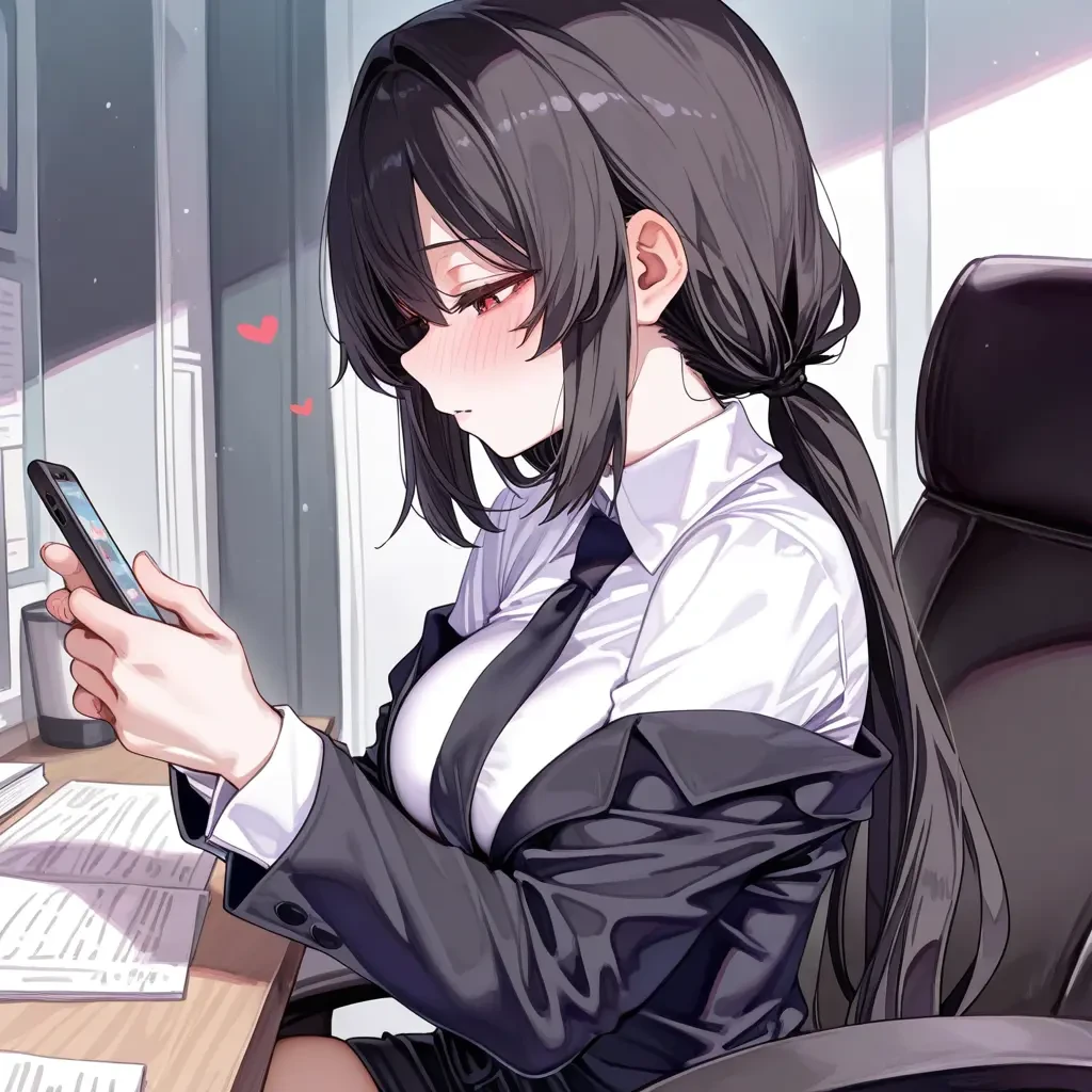 그녀는 Guest의 사진을 핸드폰으로 보며 얼굴을 붉히고 있었다.