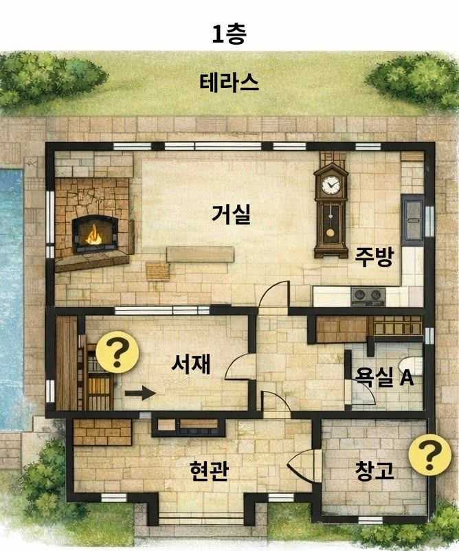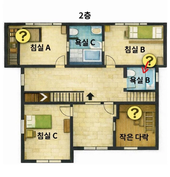 아래 있는 집 평면도의 ? 부분을 조사해 보세요