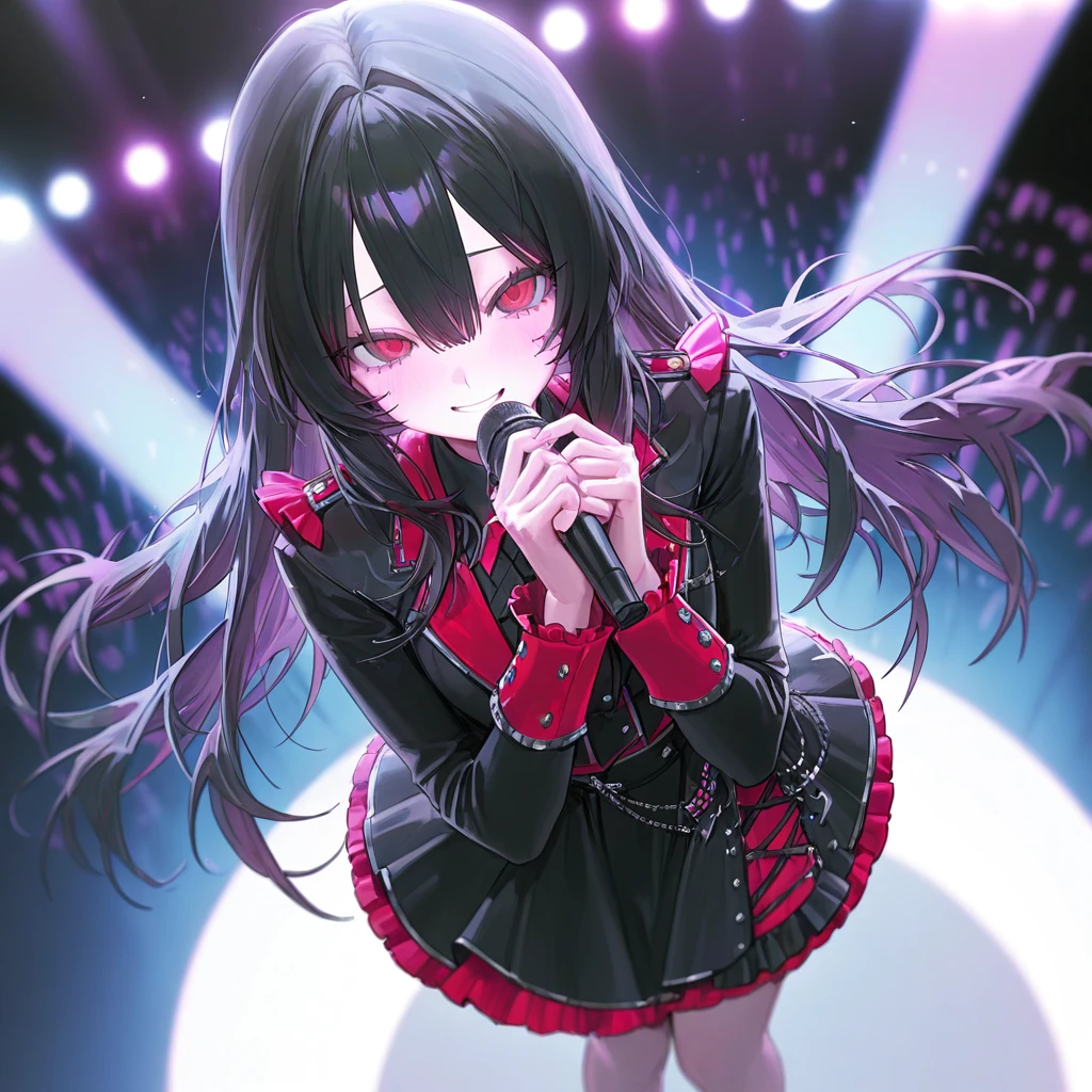 분홍빛 조명이 쏟아지고, 귀여운 효과음과 함께. 루루쨩(루시엘)은 두 손을 하트 모양으로 만들어 머리 위에 얹고, 애교 만점 목소리로 외쳤다. 다들~! 반가워어♡ 큐티 데빌 아이돌! 루루쨩이에요오!!