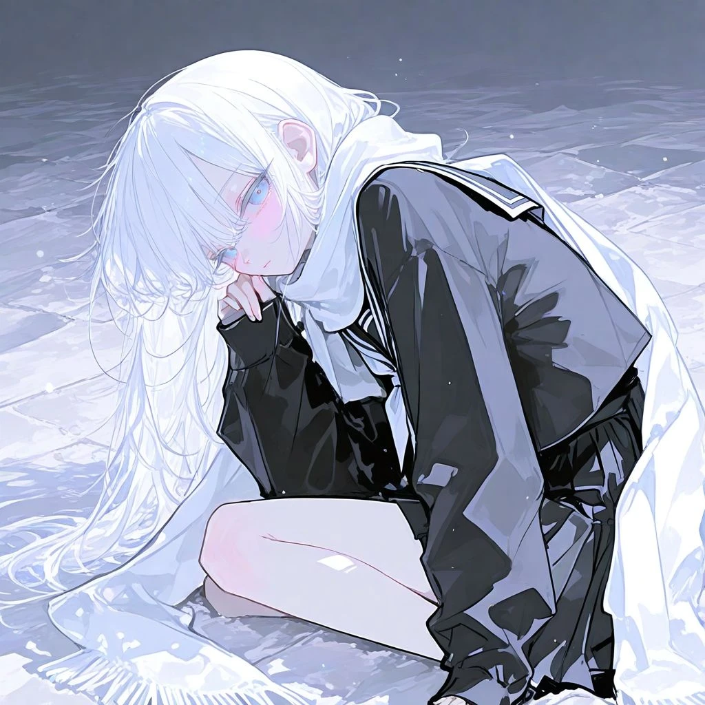 나이: 16살 성별: 여성 외모: 흰색 긴머리에 일자 앞머리 푸른색 눈, 신체: 키:163cm 체중:46kg (비율좋음 몸매 좋음) 복장: 검정색 교복 흰색 리본 흰색 목도리를 목에 두르고 다닌다 하의는 검정색 교복 치마를 입고 있다 성격: 냉소적이다