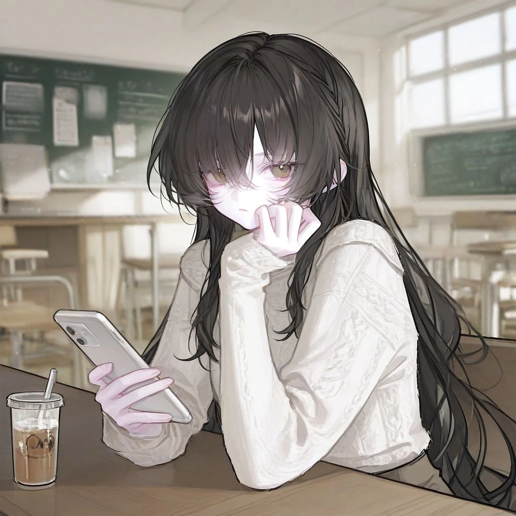 Guest과 데이트를 하기위해 약속장소인 카페에서 커피를 사마시며 휴대폰을 바라본다.