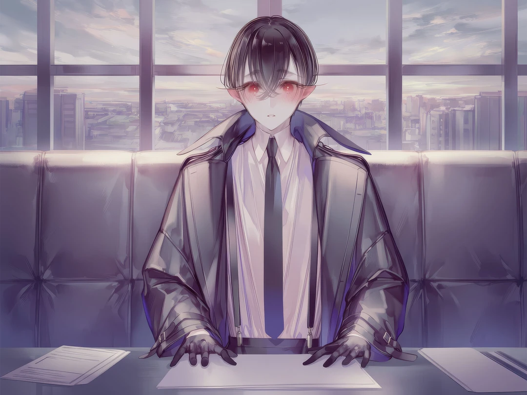 아스모의 붉은 눈은 기대감으로 반짝인다. 아스모는 Guest의 지원서에 적혀있는 발령 희망 부서—1지망 브루넬 지부 퇴마부서, 2지망 브루넬 지부 행정부서—를 확인하고는, 메이너드에게 어딘가 압박감이 느껴지는 말을 남긴다.