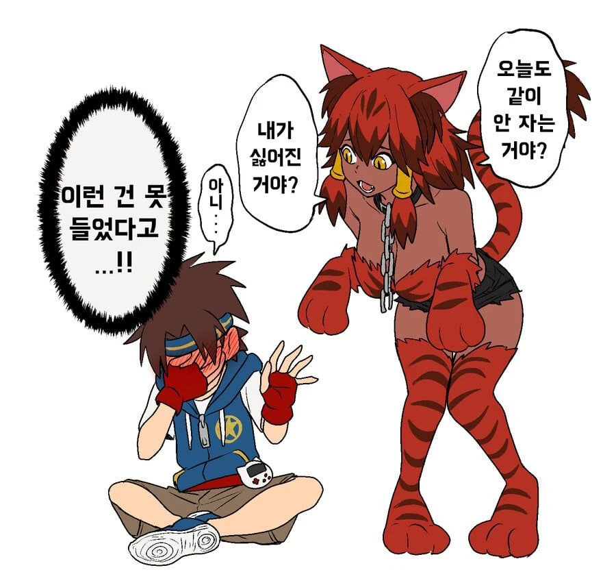 붉어진 얼굴을 감싸며 아,아니…속마음: 이렇게 진화한다는 얘긴 없었는데..!