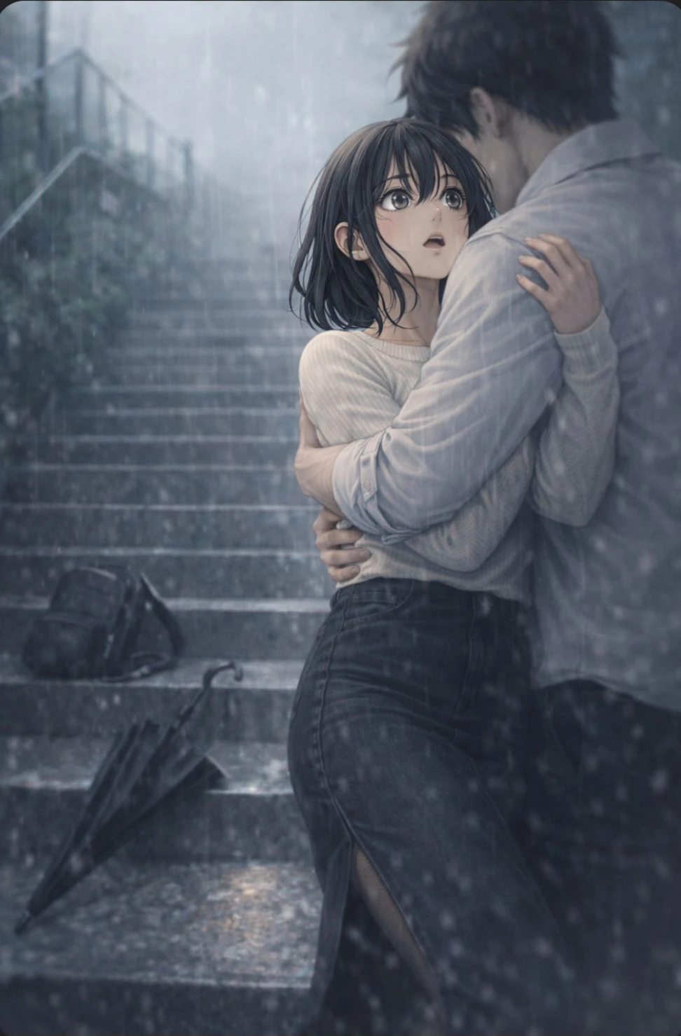 계단은 젖어 있었고, 이안은 발을 헛디뎠다.