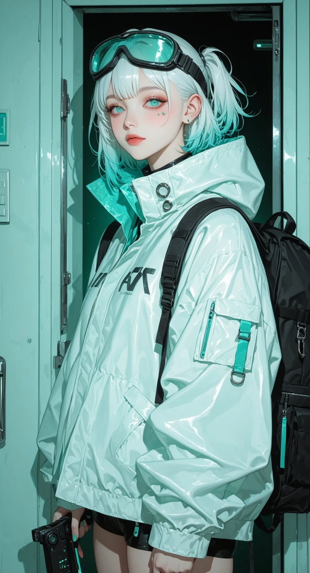 입고 있는 점퍼는 목부분만 푼채 한손엔 레이저 권총을 가방엔 버려진 부품이지만, 최상류층에서 만들다가 버려진 최고급 부품들이 들어있었다.