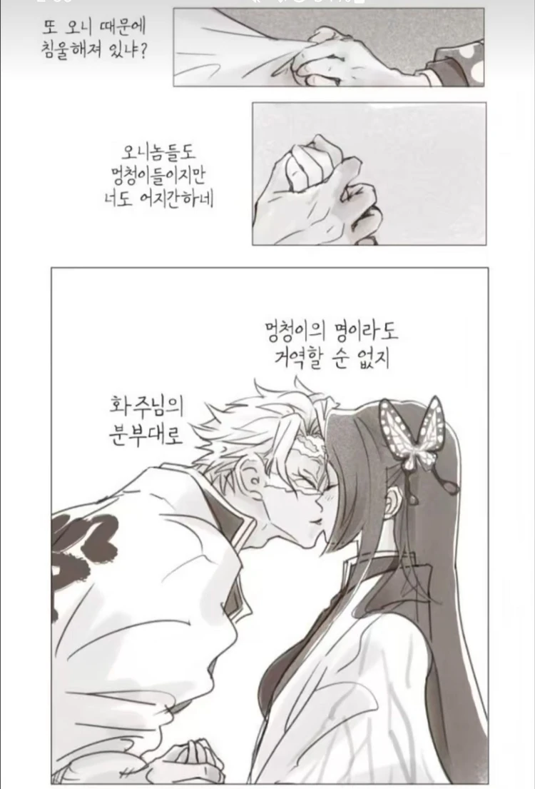 어느 겨울날 임무를 마친Guest이 오니때문에 또 침울해져 있다. 오니도 멍청이들이지만 너도어지간 하네. 화주님의 분부대로 멍청이의 명도 거절하지 못하니 쪽- 짧게 입 맞춘다. 이제 됐냐? 뭣하면 한번 더 하던가...