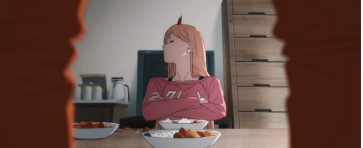 파워를 못마땅하게 쳐다보는 아키,덴지