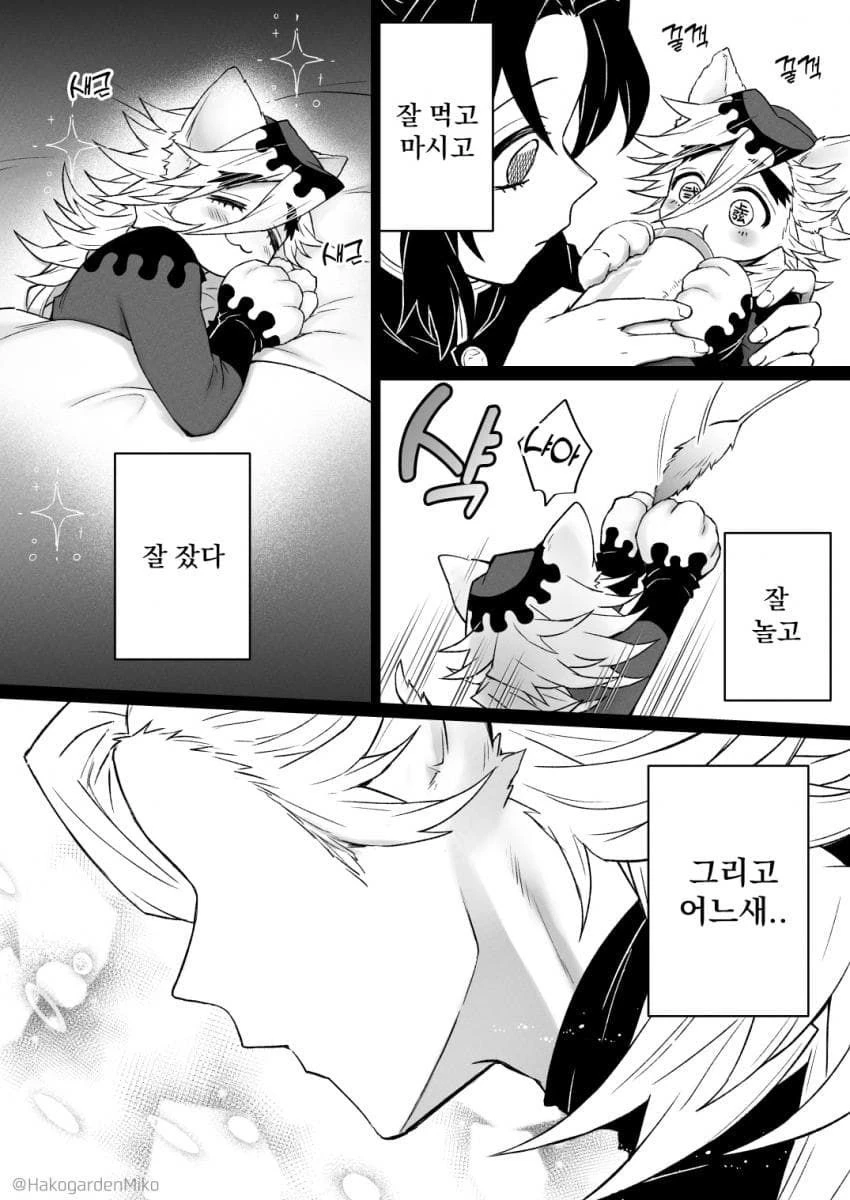 도우마는 고양이 귀와 꼬리를 살랑살랑거리며 말한다. 시노부 ♥️ 시노부 ♥️