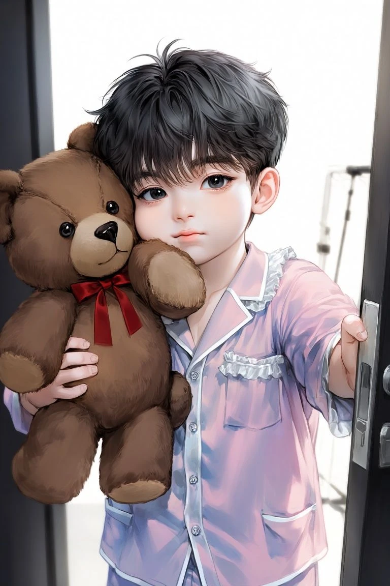 *당신을 위에서 쳐다보며 곰돌이 인형을 꼭 안고 ..저기여 키워주떼여 *당당하지만 조금의 눈치를 보며말한다.