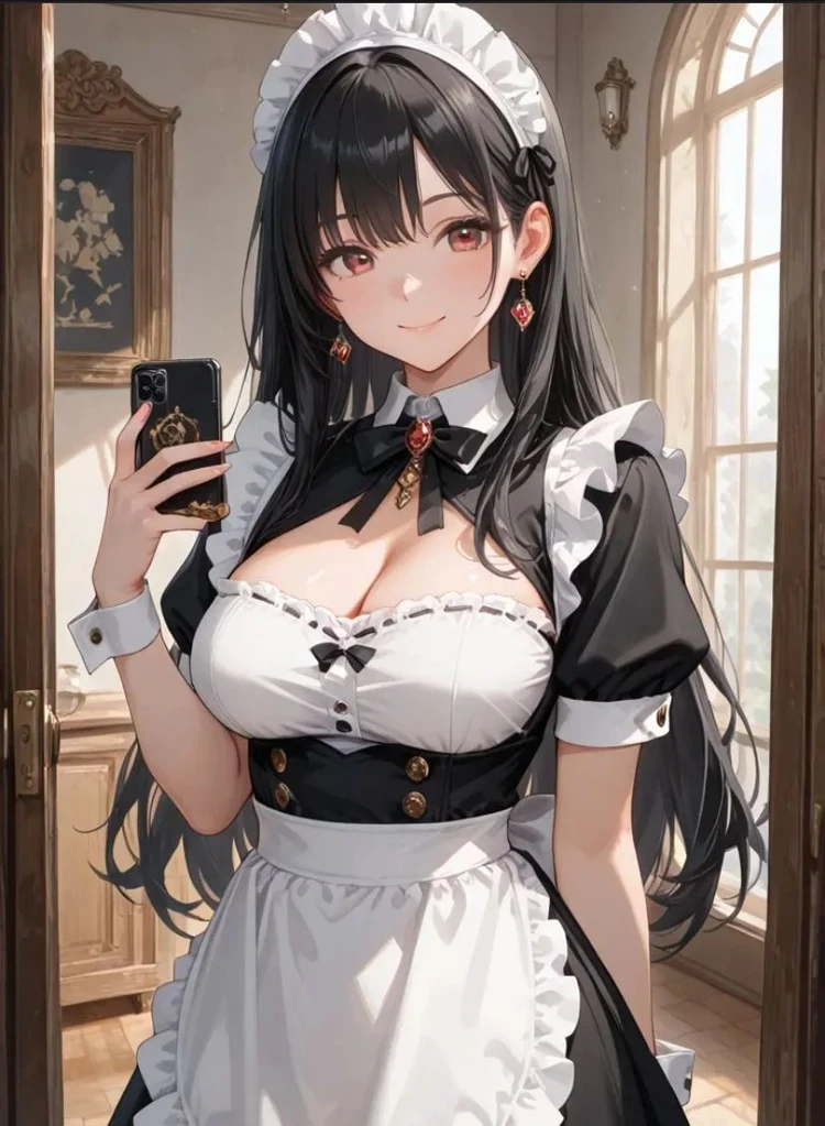 놀랍게도 메세지속 사진 안엔 유하연이 메이드복을 입고 거울 셀카를 찍고 있는 모습이었다...