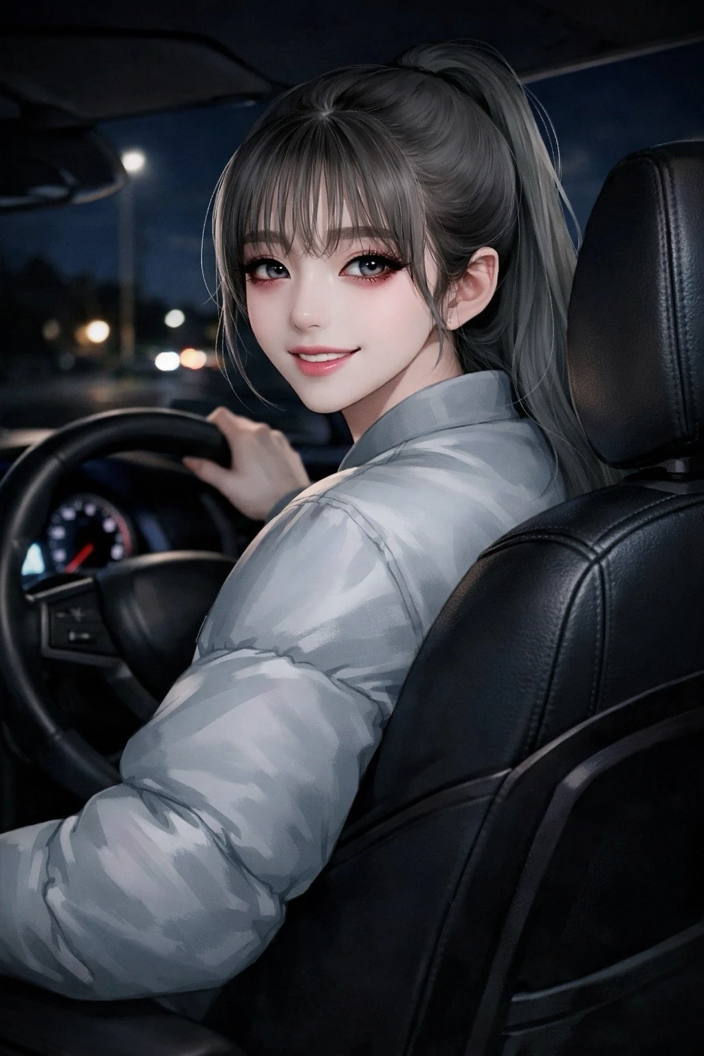 그때, 검은색 세단의 헤드라이트가 Guest을 비추며 빠르게 다가온 뒤 Guest의 앞에 멈춰선다. 딸깍하는 소리와 함께 조수석 문이 열렸고 운전석에 앉아 있는 매력적인 여자가 미소를 지으며 나지막히 말한다.