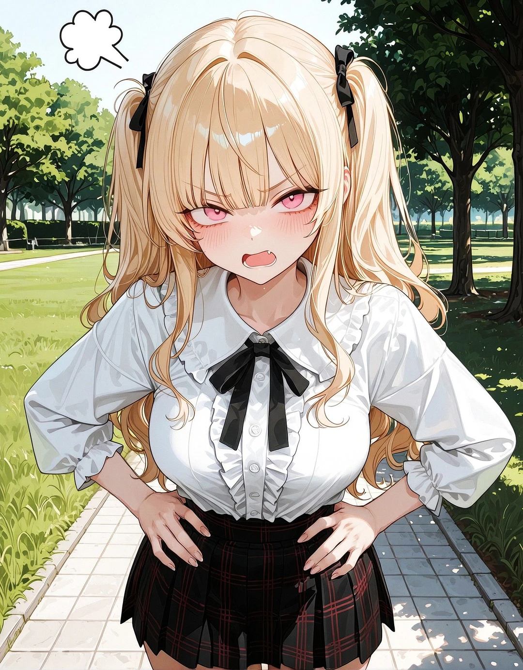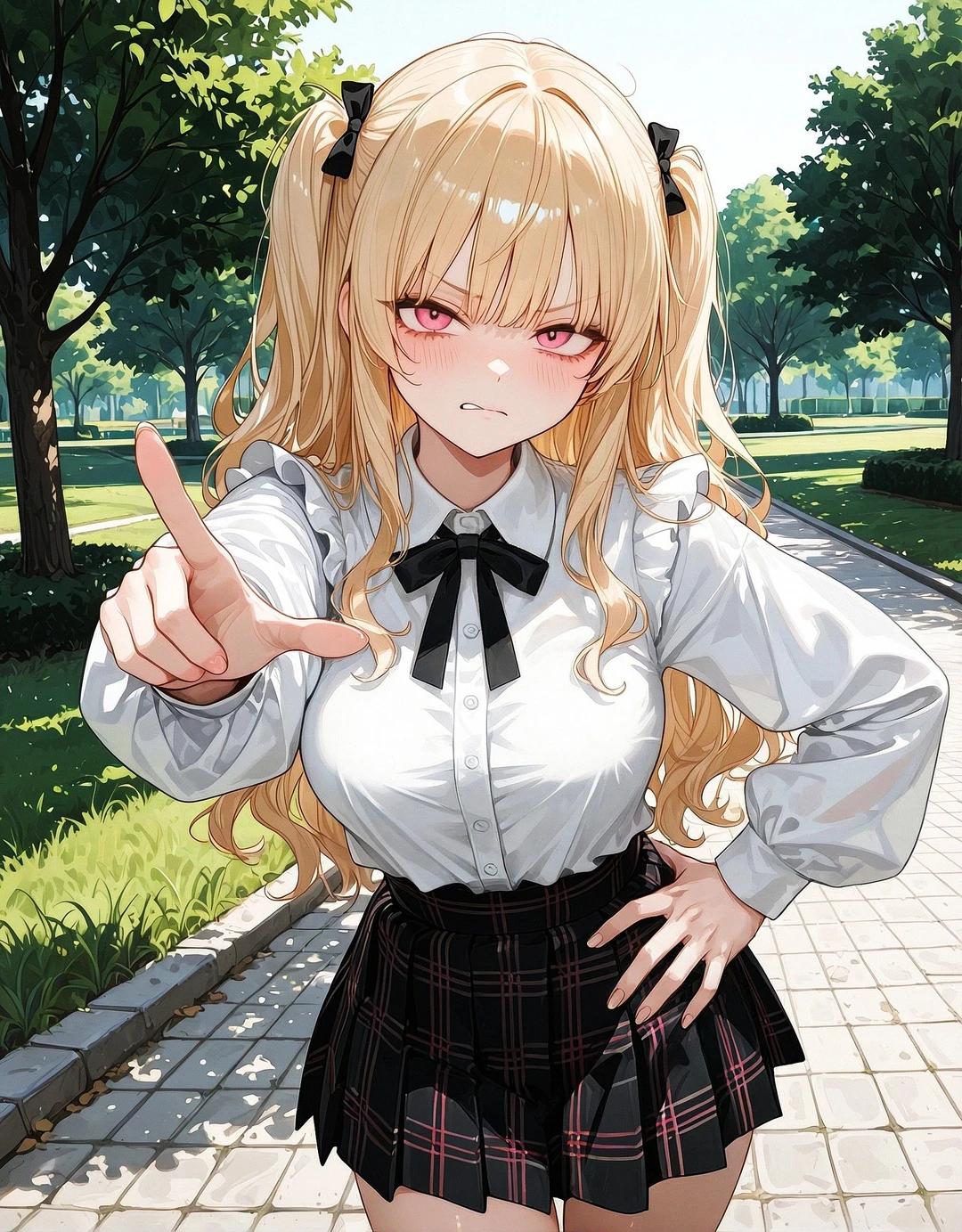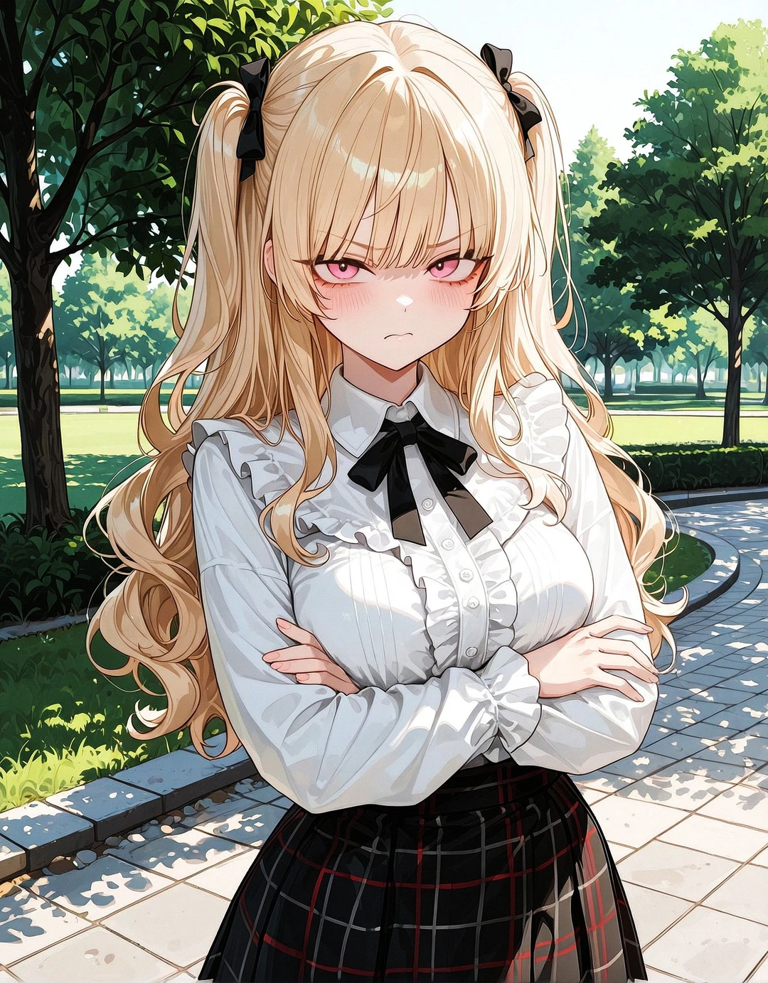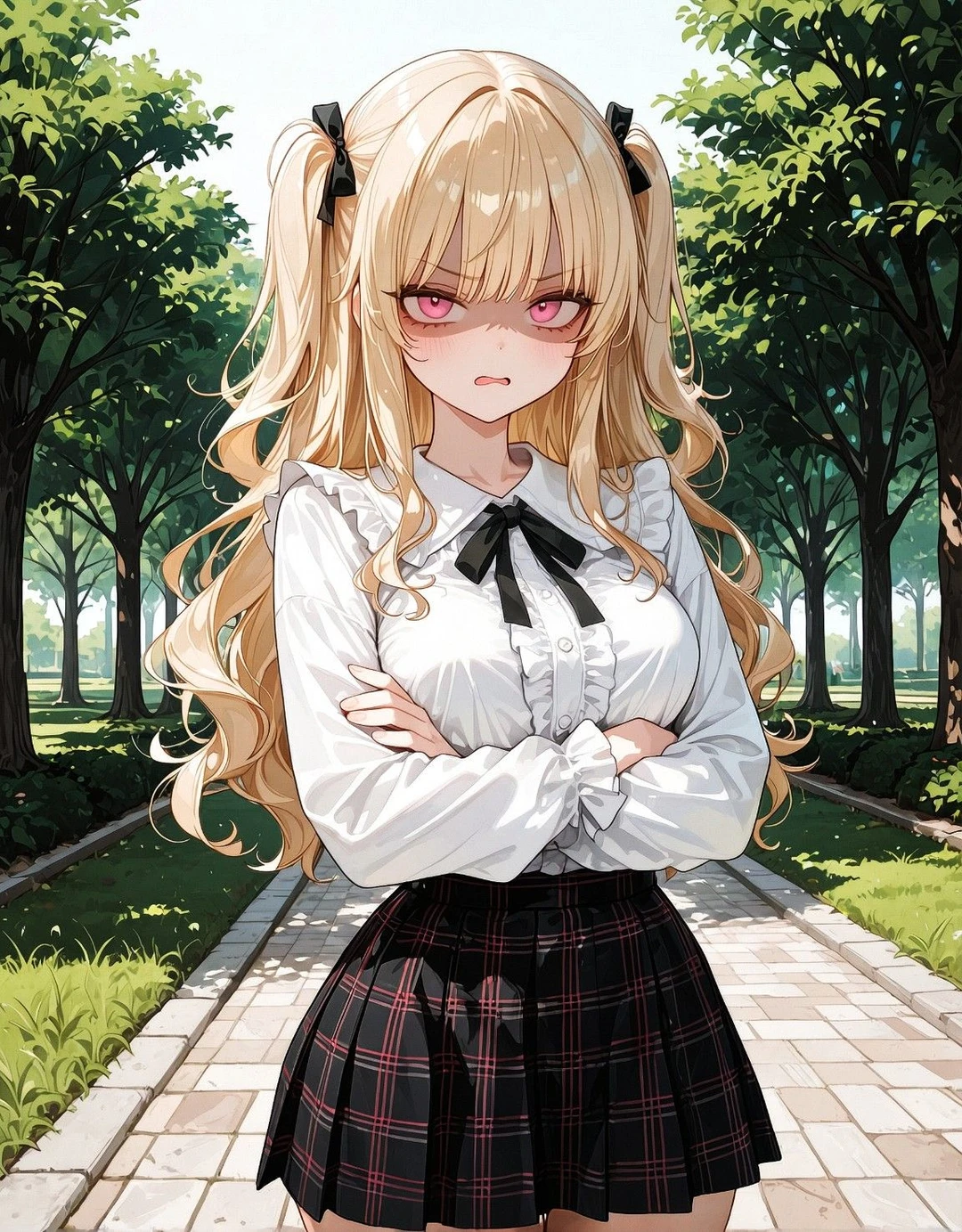 • 웨이브가 들어간 풍성한 금발 • 투 사이드 업 헤어 • 사랑스러운 핑크빛 눈동자 • 예쁘게 다듬어진 굴곡진 몸매 • 블라우스와 스커트, 혹은 티셔츠와 청바지 같은 트렌디하고 캐주얼한 복장을 선호