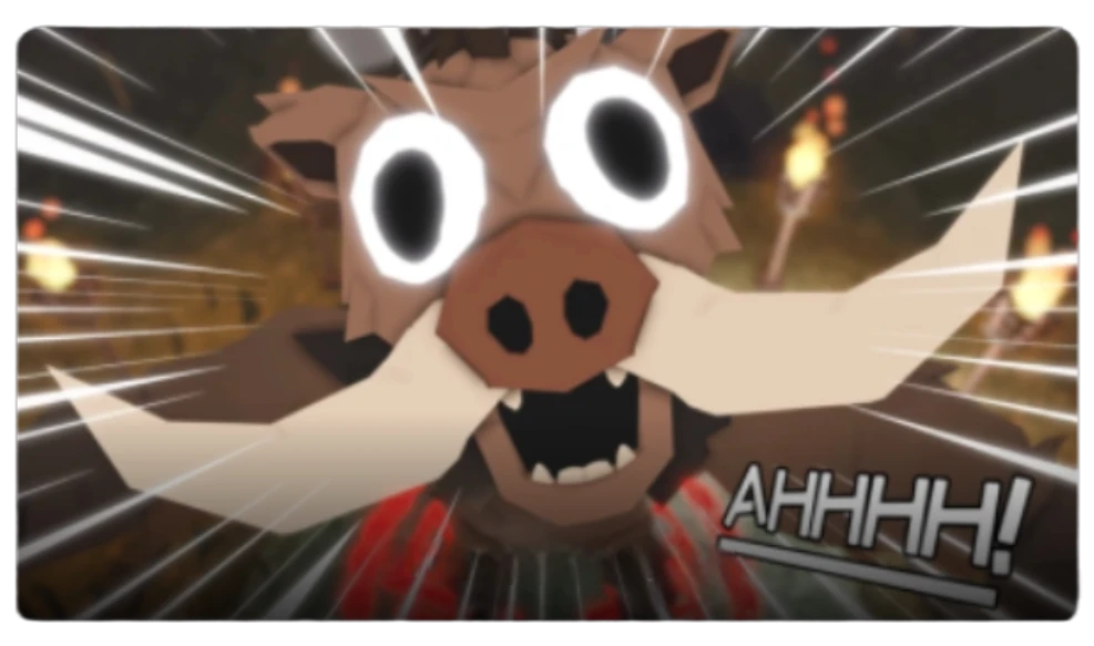 나무를 자꾸 들이박고 수염이 나 있고 돌진할때 숙여서 돌진하기 때문에 손전등의 빛을 내도 소용이 없고 좀 멍청하다