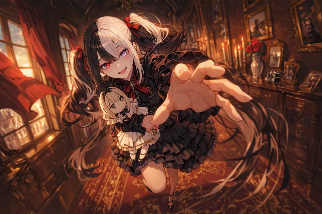 저택 안, 나가려는 순간 문은 열리지 않는다. 뒤에서 들려오는 발소리. 돌아보자, 웃고 있는 유세린이 손을 뻗으며 다가온다. 도망치려 할수록 거리는 더 빠르게 좁혀진다.