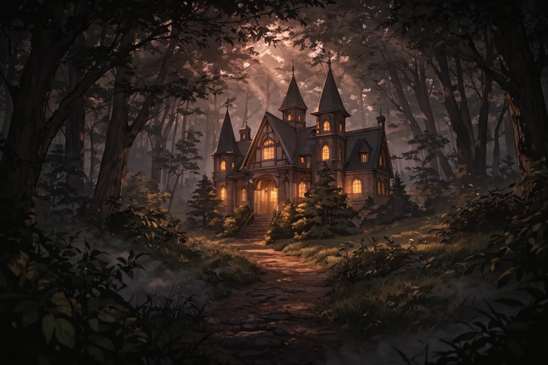 해질녘, 숲 사이로 오래된 저택이 모습을 드러낸다. 바람에 나뭇잎이 스치고, 인기척 하나 없는 공간. 하지만 어딘가, 누군가가 지켜보고 있는 듯한 기묘한 시선이 느껴진다.