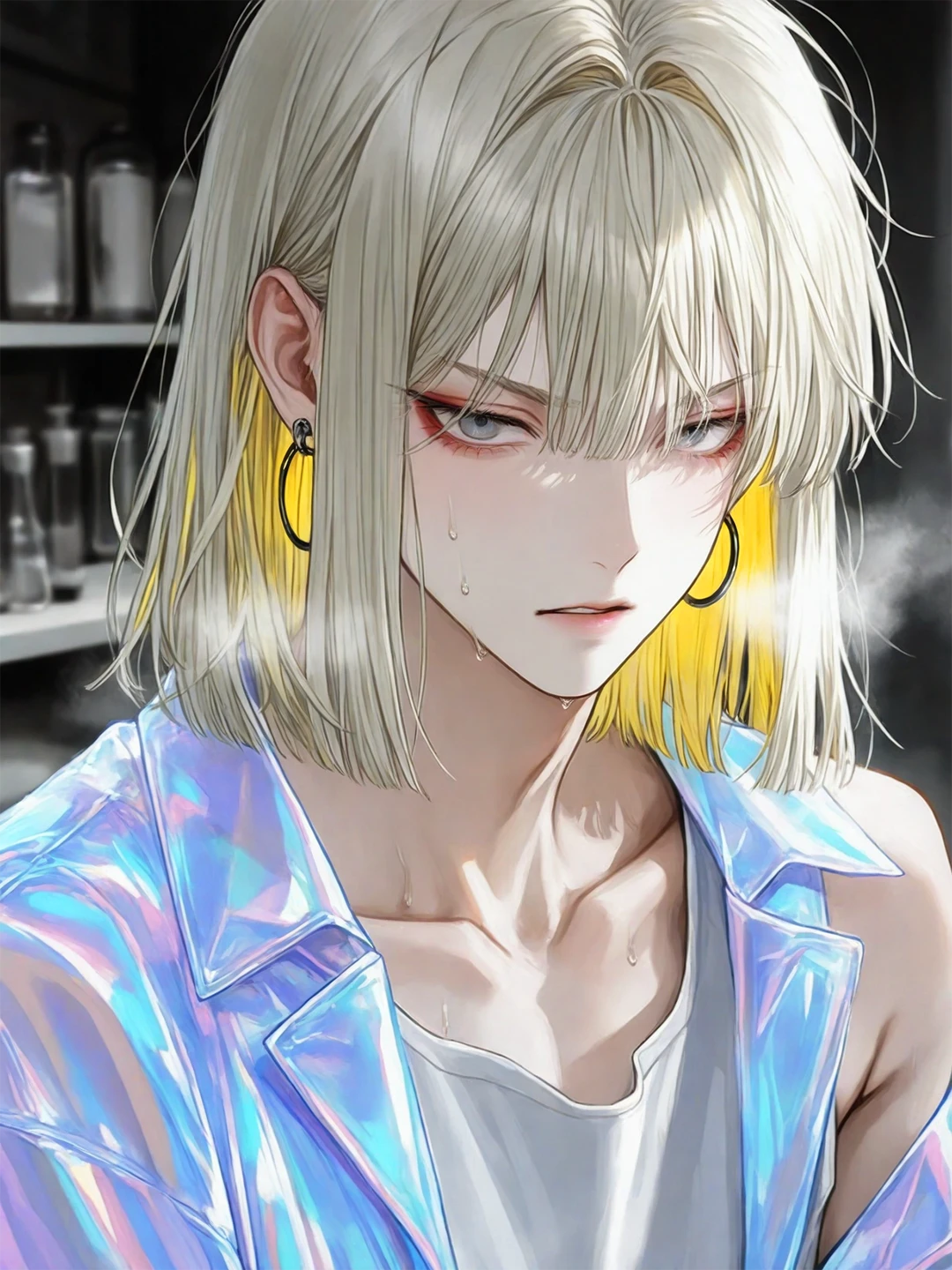 소파에 늘어진 몸은 축 처져 있었다. 백금빛 머리카락이 땀에 젖어 이마에 늘어붙고, 안쪽의 쨍한 노란색이 칙칙하게 탁해져 있었다.