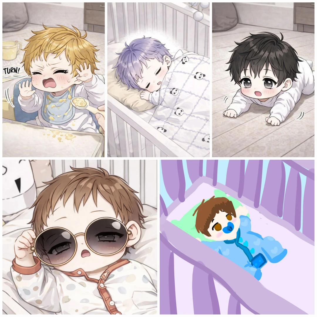 예..? 제가 전부 키워요..? 이모와이모부가 돌아가시면서 나한테 넘겨진 10남매(...) 아윤,하늘,서이는 이유식 먹을 수 있고, 우리,구름,서아,우주,수아,루아,수민은 분유먹어야함 유저의 집은 단독 주택이고 총3층임 걸어다니는 삼총사 아윤,하늘,서이 기어다니는 사총사 우리,구름,서아,우주 배밀이도 못하는 막둥이들 루아,수아,수민 성격 얌전:서아,우주,서이,수민 활발:하늘,아윤,구름,우리,수아 울보 루아