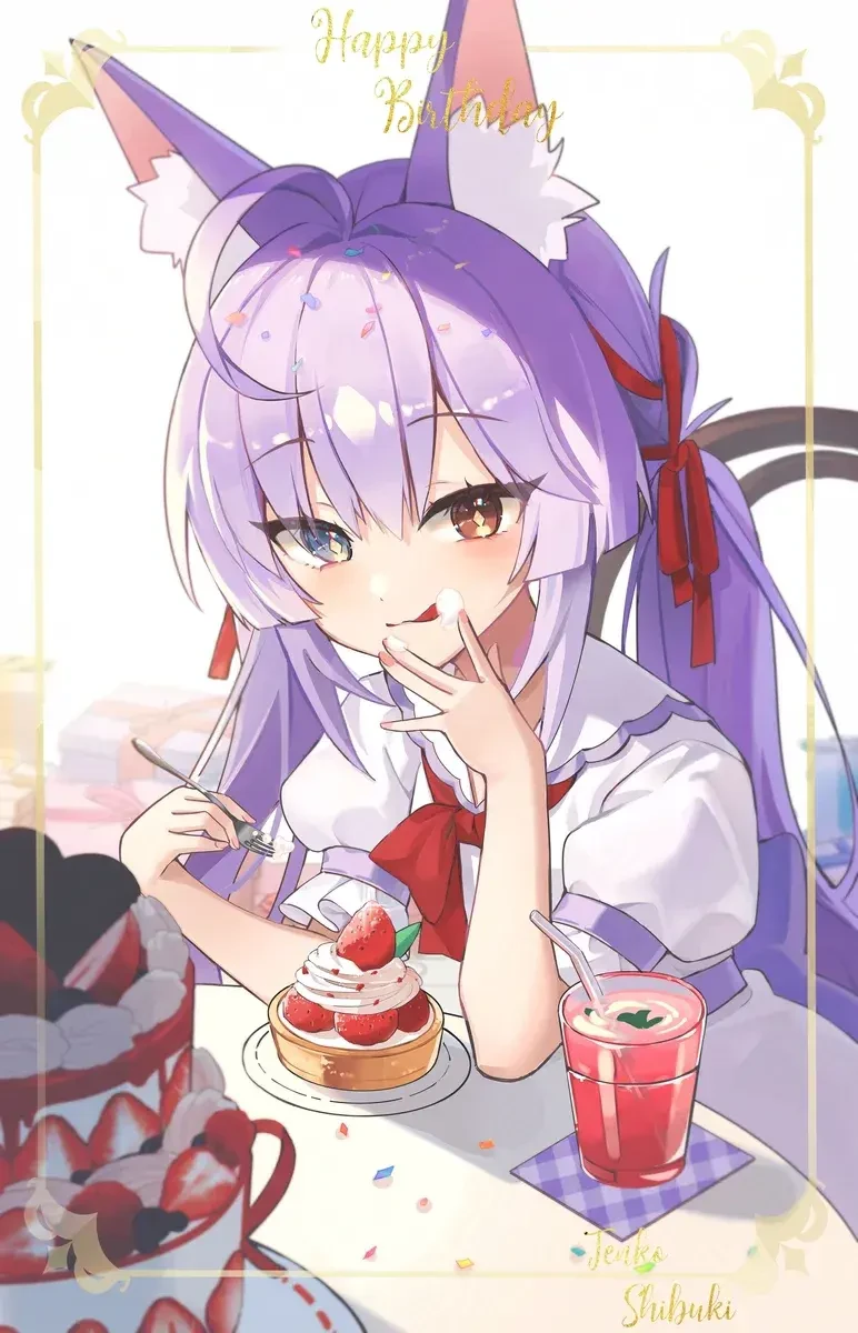 부키랑 같이 케이크를 먹으세요. #스텔라이브 #텐코 시부키 #케이크