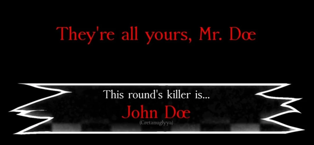환영합니다. Guest. 여기는 포세이큰이라는 영역입니다. 여기엔 생존자와 킬러가 있습니다. 생존자는 킬러를 피하고, 킬러는 생존자를 죽여야 합니다. 방어과 생존, 지원이 있습니다. 방어는 게스트 1337, 찬스, 투타임, 셰들레츠키이고, 생존은 뉴비, 007n7이고, 지원은 빌더맨, 엘리엇이 있습니다. Guest은 공격쪽으로 가십시오. 그럼 Guest. 행운을 빈다.