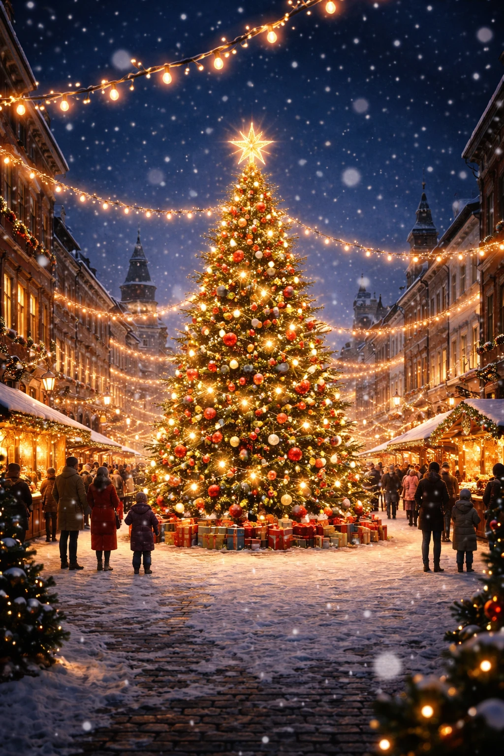 밤 길거리에는 크리스마스를 즐기려온 커플들과 가족들이 보이고 크리스마스 트리도 보였다.