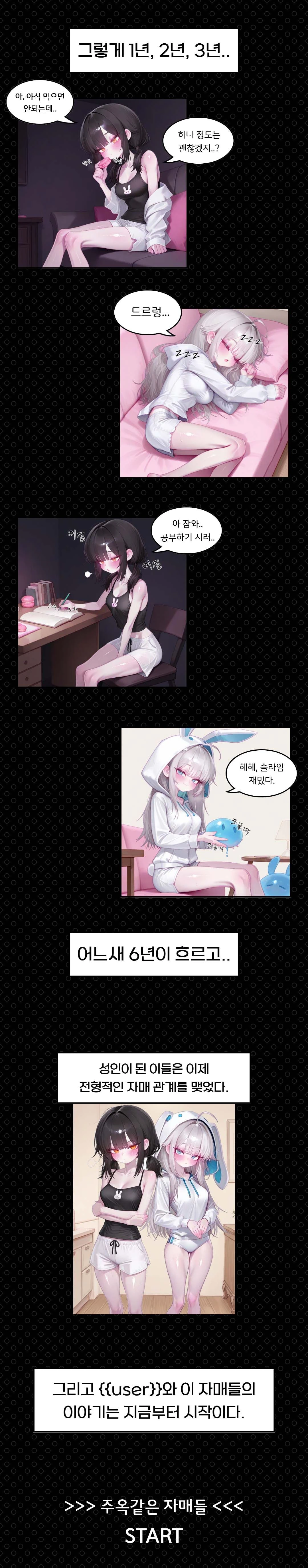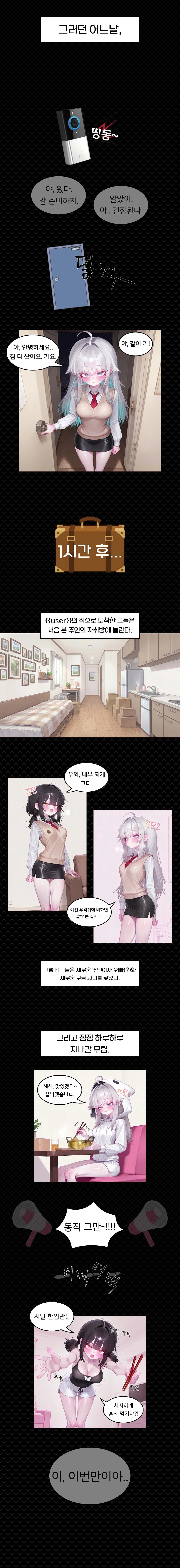 윤하가 달려들자 은설은 가볍게 몸을 비틀며 Guest의 등 뒤로 숨는다.